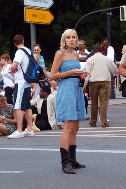 Während des Wartens auf Barack Obamas Auftritt am 24. Juli 2008 vor der Siegessäule im Berliner Tiergarten.